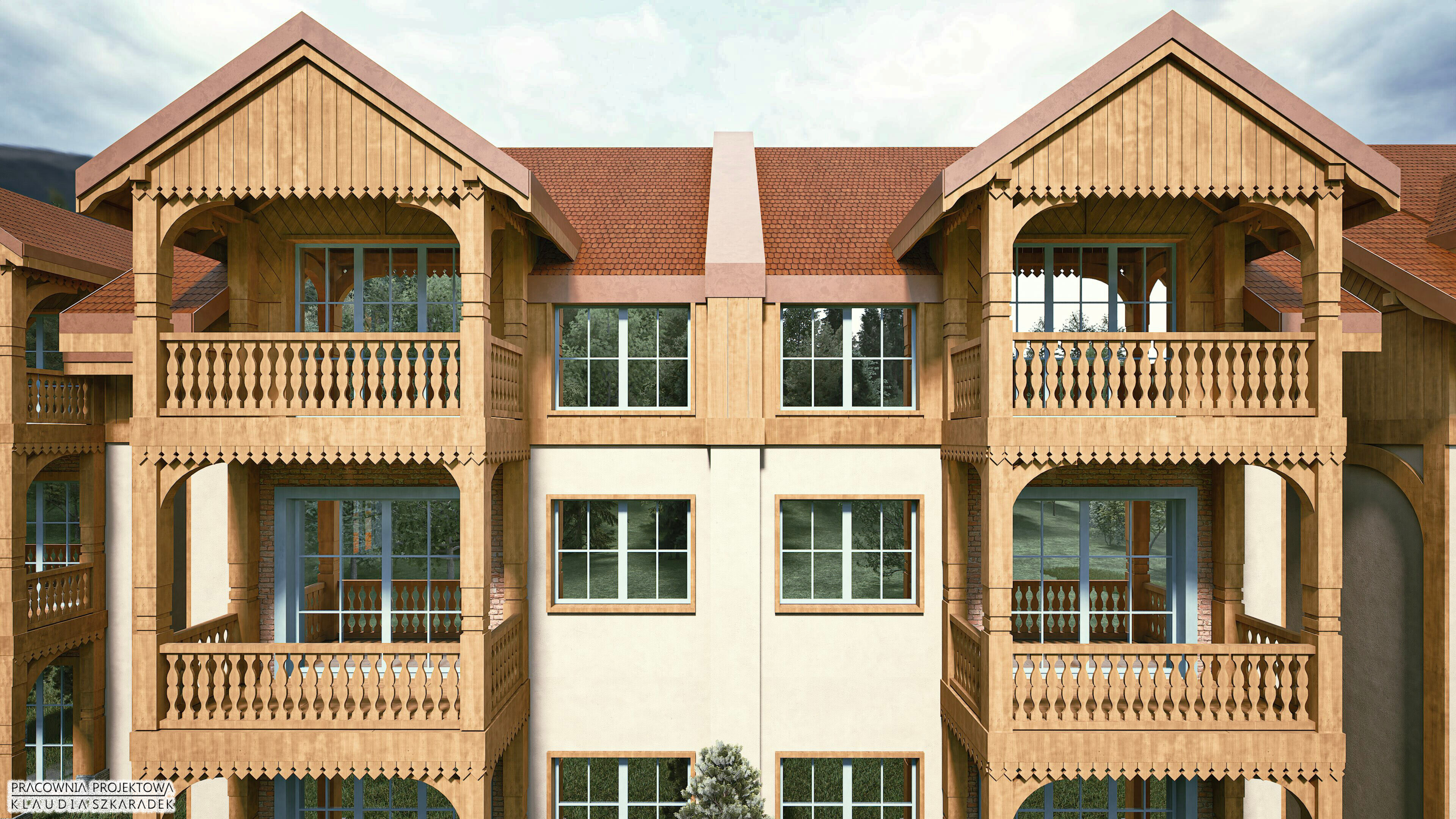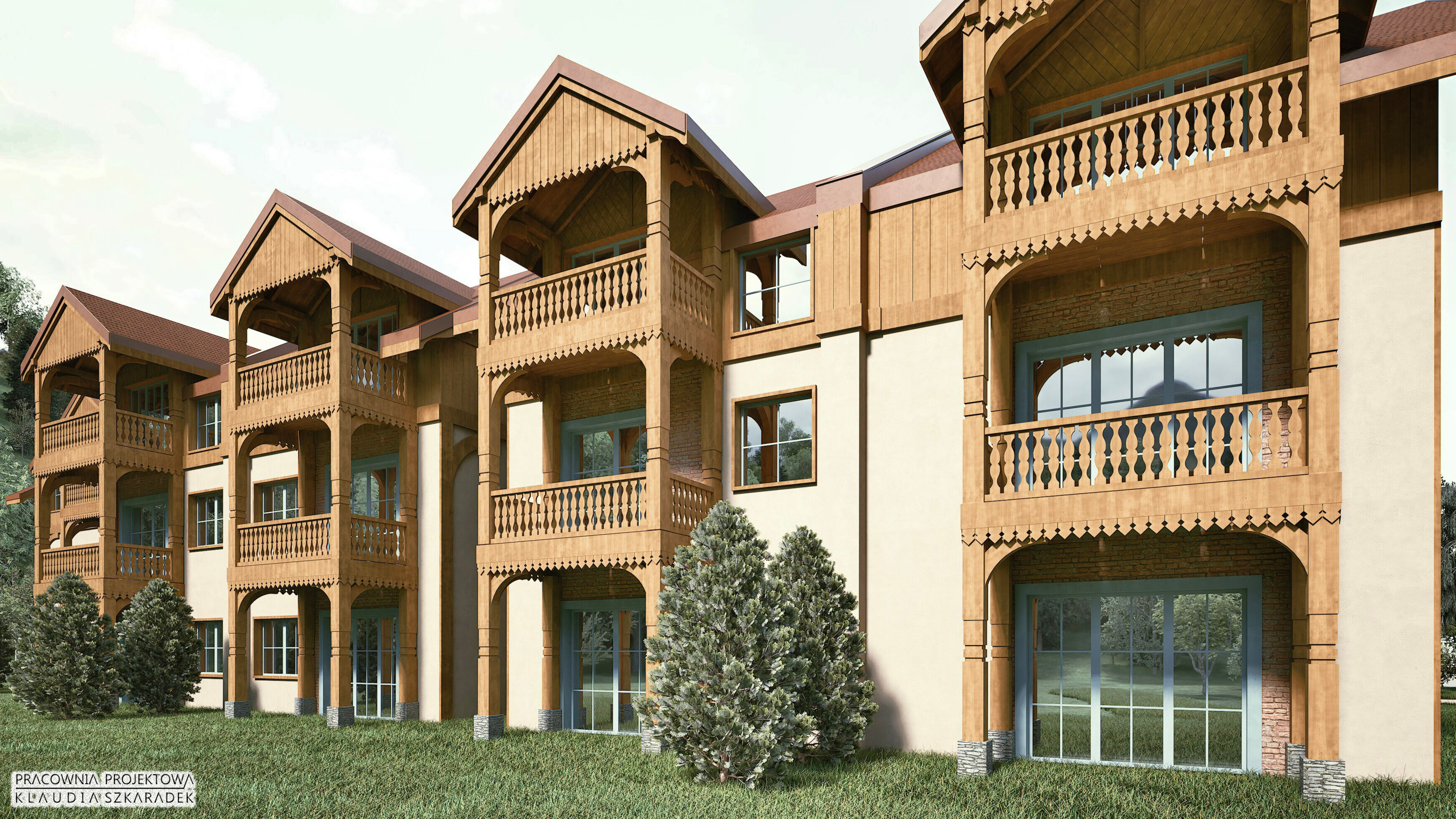 Architektura osiedla czerpie z tradycji góralskiej oraz willowej zabudowy z lat 20. XX wieku, charakterystycznej dla miejscowości uzdrowiskowych. Inspiracje te widoczne są w formach dachów, rytmie elewacji, gankach oraz drewnianych detalach. Zastosowane środki nie mają charakteru tylko dekoracyjnego – porządkują kompozycję budynków i nadają całości spójny, lokalny charakter.