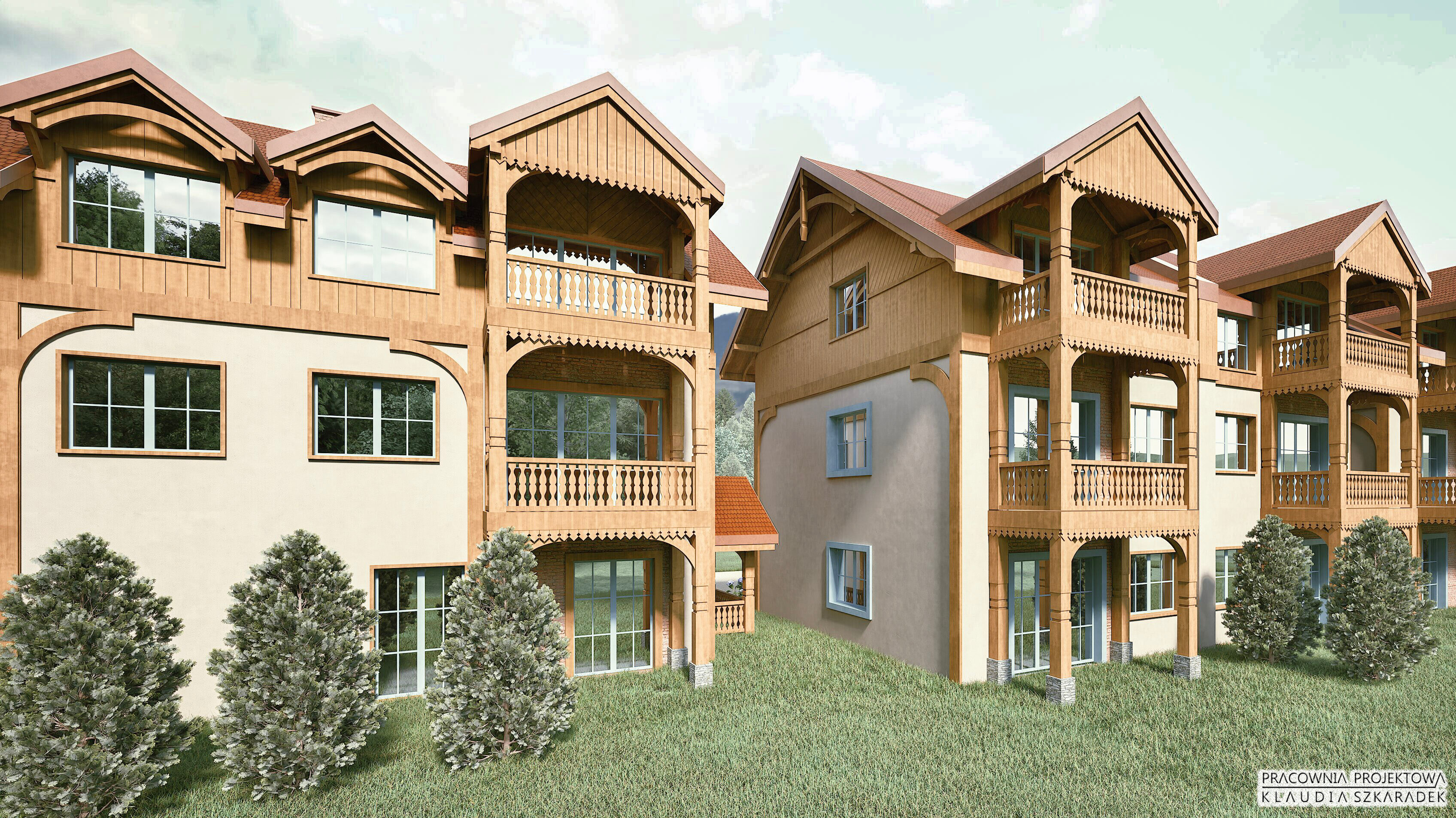 Projekt osiedla w Piwnicznej - Zdroju powstał z myślą o stworzeniu kameralnej zabudowy mieszkaniowej z apartamentami na wynajem, która będzie czytelna przestrzennie, funkcjonalna i zakorzeniona w charakterze miejsca.