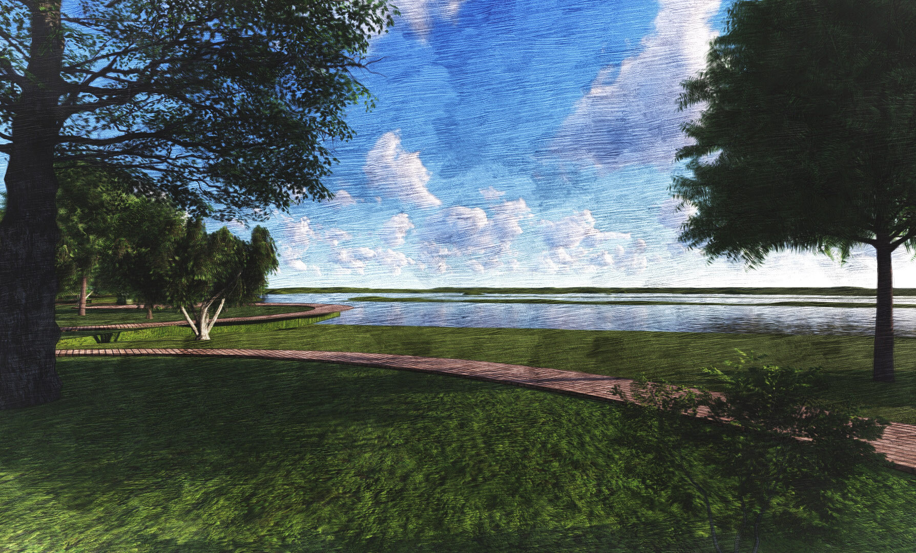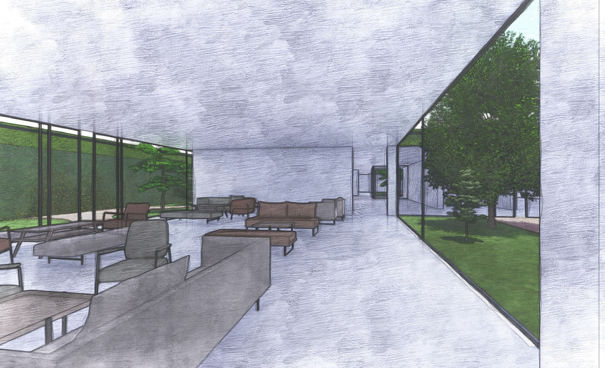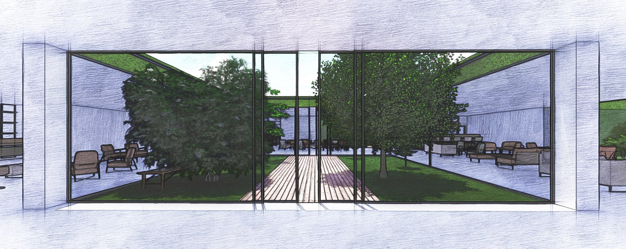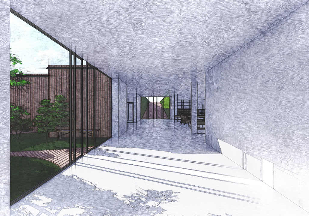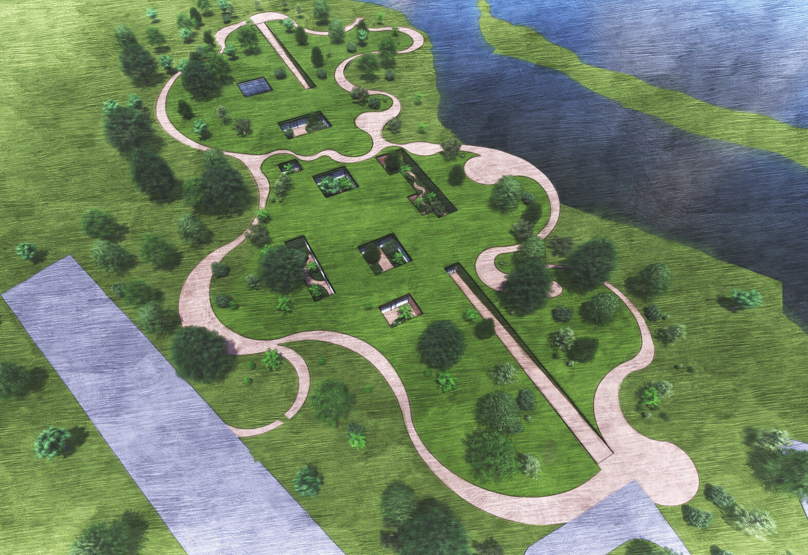 Nowoczesny budynek rekreacyjny, zaprojektowany z myślą o harmonii z otoczeniem i zrównoważonym rozwoju. Jego konstrukcja częściowo ukryta pod ziemią minimalizuje ingerencję w krajobraz, jednocześnie zapewniając naturalne doświetlenie wnętrz poprzez przeszklone dziedzińce. Obiekt wykonano z żelbetu monolitycznego, a wnętrza wykończono mikrocementem, co nadaje mu minimalistyczny charakter. Wnętrze podzielono na strefy funkcjonalne, w tym przestrzenie czytelnicze, sale konferencyjne i strefy relaksu. Dzięki zastosowaniu pasywnych systemów ogrzewania i chłodzenia oraz paneli fotowoltaicznych budynek charakteryzuje się wysoką efektywnością energetyczną. Zielone dachy dodatkowo poprawiają izolację termiczną i retencję wody deszczowej. Nad budynkiem zaprojektowano park rekreacyjny, który pełni funkcję otwartej przestrzeni dla mieszkańców. Znajdują się tam ścieżki spacerowe, tereny zielone oraz strefy odpoczynku, integrujące architekturę z naturalnym krajobrazem.