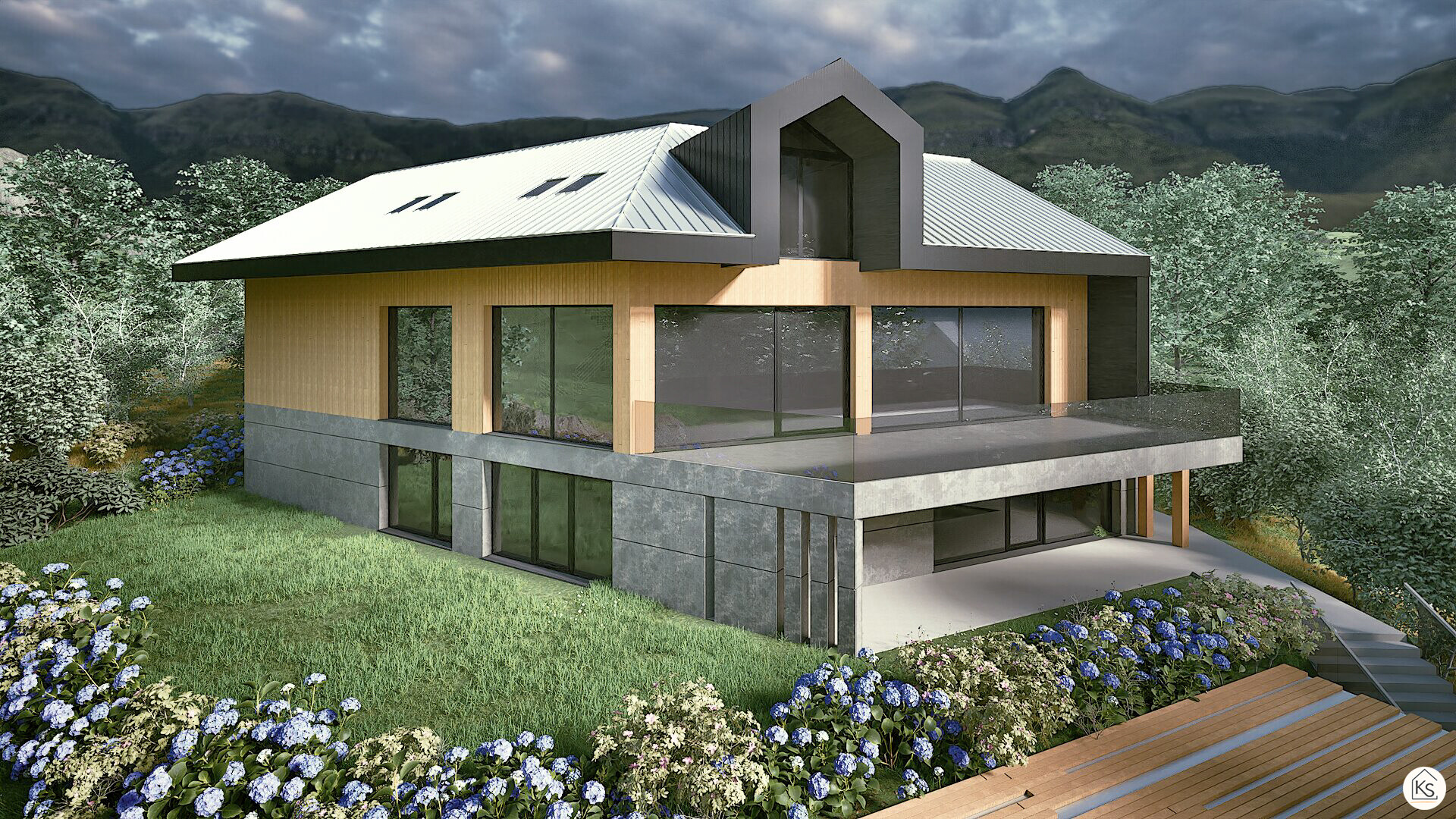 Projekt: dom pasywny z widokiem na jezioro | okolice Nowego Sącza